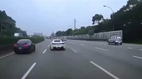 疯狂的代价!法拉利违规超车 致GTR失控追尾
