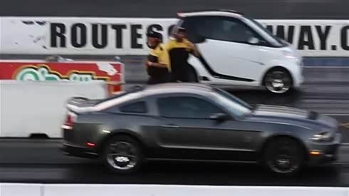 没想到 彪悍奔驰Smart直线秒杀野马SHELBY