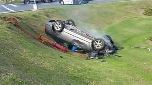 监控实拍:作死司机故意别车 害对方翻车后逃逸