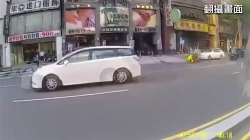 监控实拍:铁道口抢道 小车头被削掉...台铁太鲁阁号