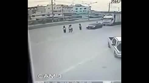 监控实拍:作死男高速上持枪劫车 被撞飞...