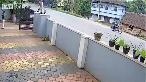 监控实拍:醉酒男女骑摩托失控 把墙砸了个洞...