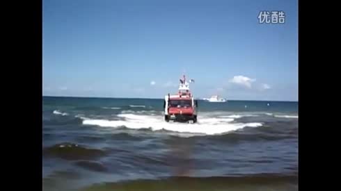 海边实拍奔驰乌尼莫克游艇救援车入海作业