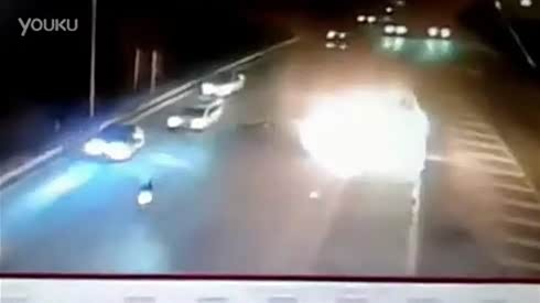 高速因错过路口倒车 遭后车追尾爆炸起火...