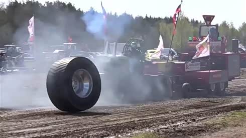 轮胎断轴飞出!爆改拖拉机加速太猛了