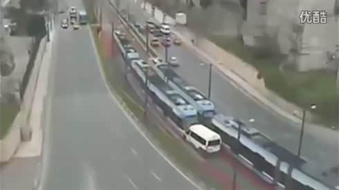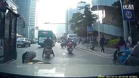 惊险一幕!电车女被撞倒 险遭大客碾压