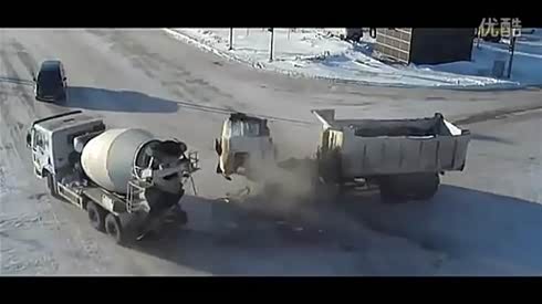 卡车与搅拌车相撞恐怖瞬间!头没了!