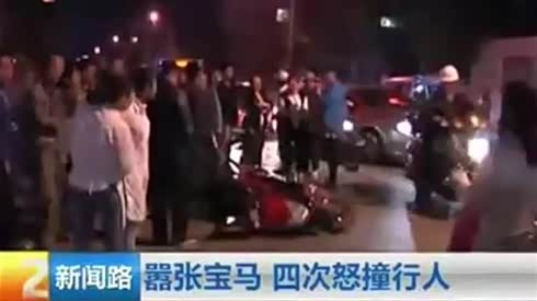 嚣张宝马车主 追尾电动车反污被撞 4次怒撞行人