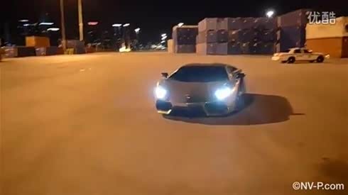 不扰民!电镀兰博基尼Aventador深夜码头漂移撒欢