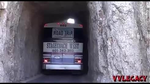 给司机跪了 驾驶大巴车通过狭窄隧洞