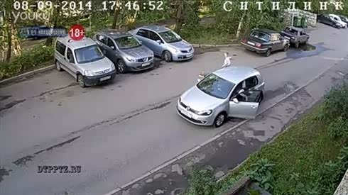 监控实拍:鬼探头 倒霉车主瞬间吓尿了