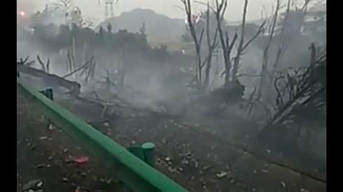 吓死人!拉鞭炮的货车 高速翻车爆炸