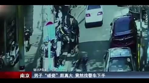 胆真大 男子骑电动车碰瓷警车