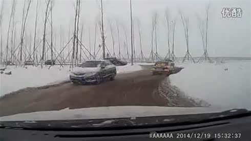 监控实拍:雪地路滑 奔驰R疯狂漂移撞击雅阁