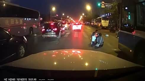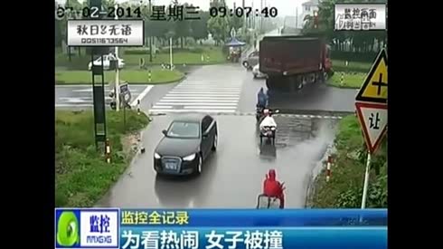 杯具啊!女子车祸围观,又遭大货车碰撞