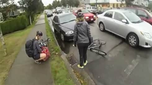 监控实拍:单车女子遭遇开门杀 妹子傻傻站着 不能帮一下忙吗...