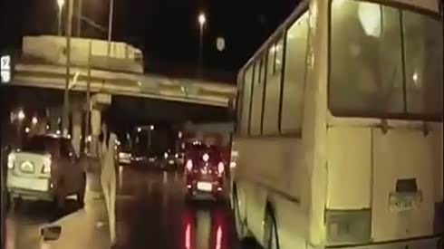 弯道不减速 大客车遭遇大卡车 瞬间杯具了...