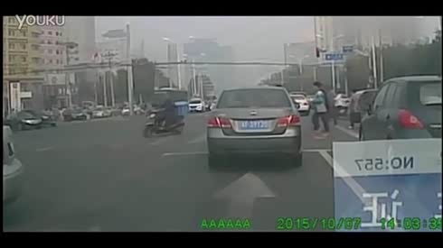 监控实拍摩托司机被撞飞瞬间-真可怕