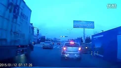 监控实拍:疯狂的大卡车 高峰车流中横冲直撞...