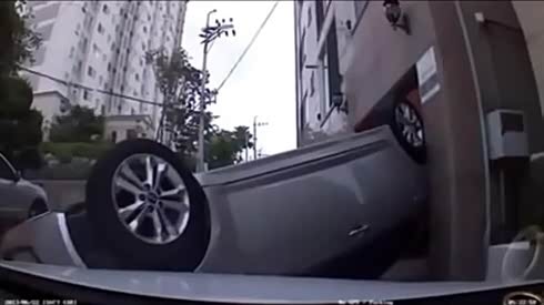 监控实拍:惊呆了!女司机开车上坡 结果却滚下山...
