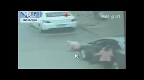 监控实拍:女孩蹲轿车前看书遭碾压 被拖行数米