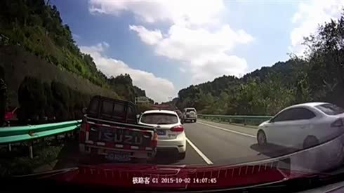 给气囊震傻了!女司机疯狂变道超车致追尾