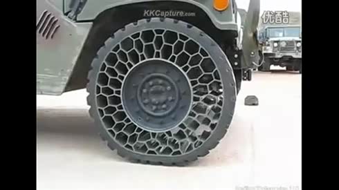 实拍:悍马非充气防爆轮胎,超强悍!!!