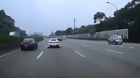 监控实拍:二货司机高速路上开斗气车 不要命了...