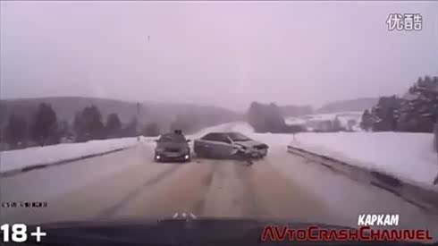 监控实拍:根本刹不住 雪地上开飞车 祸不单行...