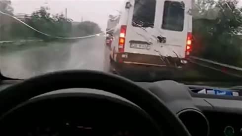 监控实拍:好大的冰雹 把车玻璃都给砸烂了...