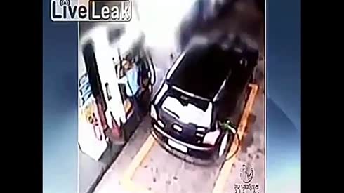 监控实拍:女司机加完油就走 拉倒加油机 女子被砸...