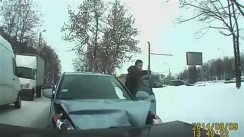 监控实拍:两车剧烈对撞 直接飞来 我的车惨了...