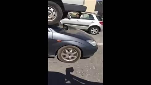 疯男驾车 猛撞短裙美女 拖行另一个美女