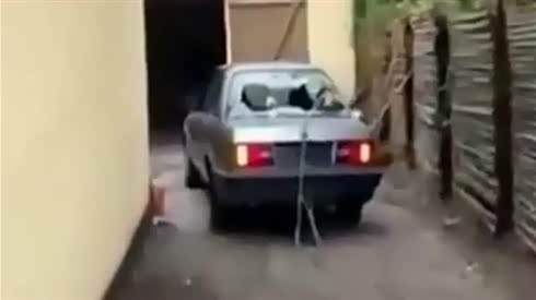汽车被黑熊光顾了 下次要锁好车门哦...