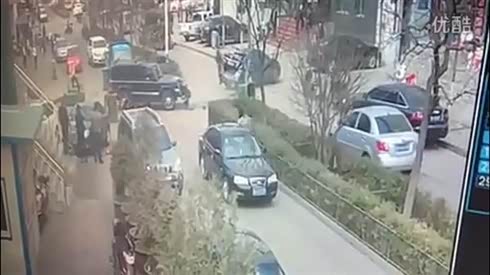 监控实拍:震惊!越野车人行道 横冲直撞 人车遭殃...