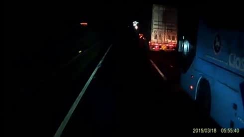 监控实拍:夜行高速 缺德大巴无视乘客安全强行并线 撞了车开溜