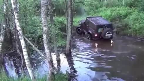 太狠了!吉普牧马人臭水塘越野 就是爬不上来!