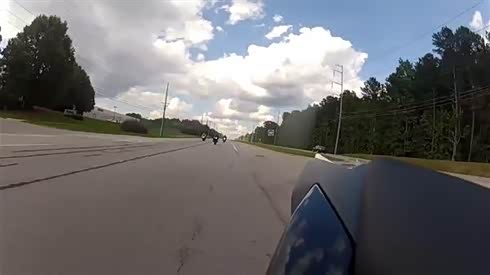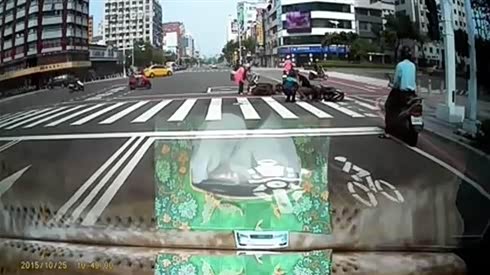恐怖追尾 两摩托手重重撞在一起...