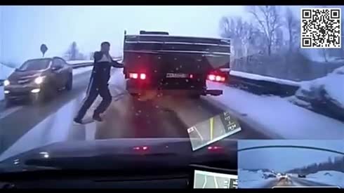 监控实拍:大货车雪地失控 司机为阻止滑坡 拼了老命...