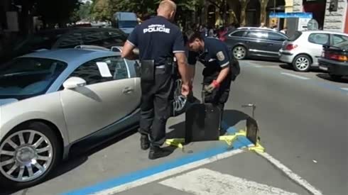 布加迪违章停车被警察上锁不料缝隙太小锁不上
