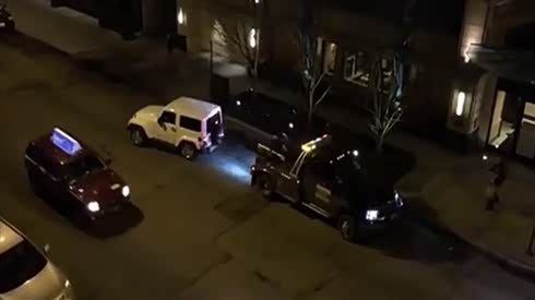 监控实拍:城管想把我的车拖走 门儿都没有 你还嫩点儿...