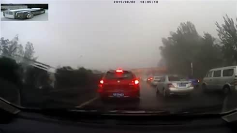 监控实拍:雨天行车 大树突然倒下 吓尿了...