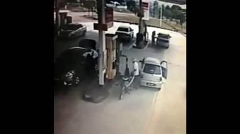 监控实拍 太恐怖!加完油后直接冲撞前面正在加油的人 致碾压身亡