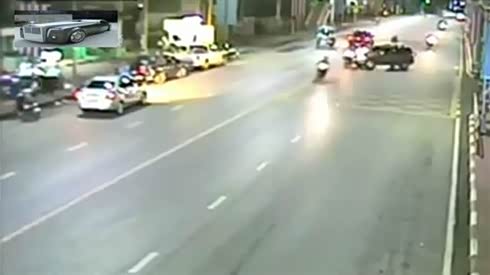 监控实拍:小车突然一个扫堂腿 后面一群摩托车全趴下...