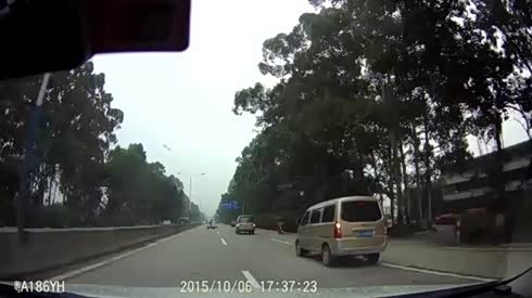 监控实拍:路遇面包车弯道侧滑失控 180度大甩尾 多车遭殃...