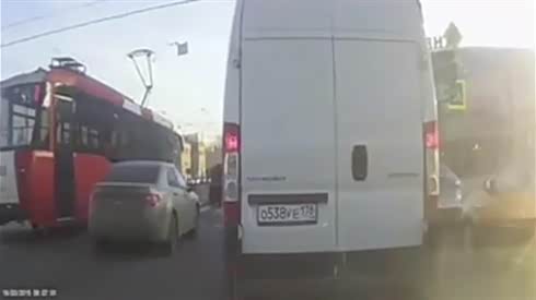 监控实拍:司机神反应 见缝就钻 化险为夷...牛掰了