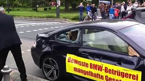 大锤抡起来!土豪大叔街头暴砸宝马M6