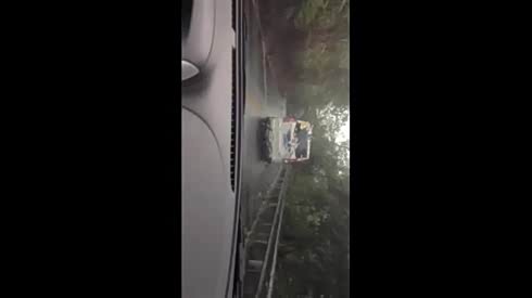 实拍湘西矮寨特大桥盘旋公路雨天上坡10分钟到顶