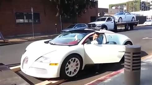 新到的布加迪卸车小心翼翼的。进去还得铺个脚垫