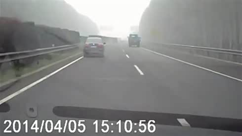监控实拍:高速疲劳驾驶跑偏撞护栏 吓尿了...